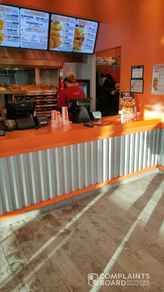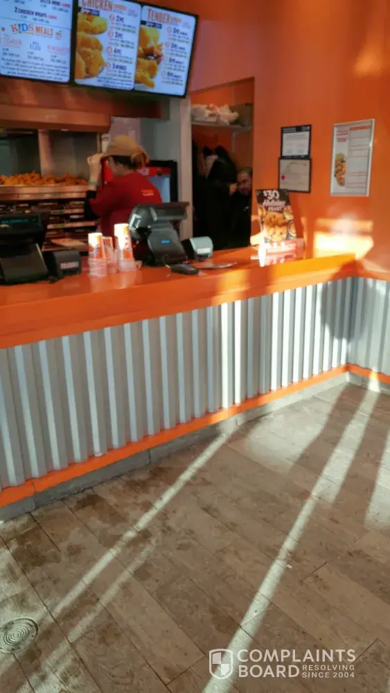 I went to the store around 7.30pm and I asked the cashier if you have chicken ribs available she mentioned "yes" its spicy. I said perfect, please give me 8 piece chicken, popcorn shrimp, and orange juice while my daughter so excited and ready to have piece. Unfortunately another customer who came after me ordered some chicken, order was took by supervisor. She did not bother asking the cashier who took my order first. Cashier said I have to wait because there was not enough chicken.
