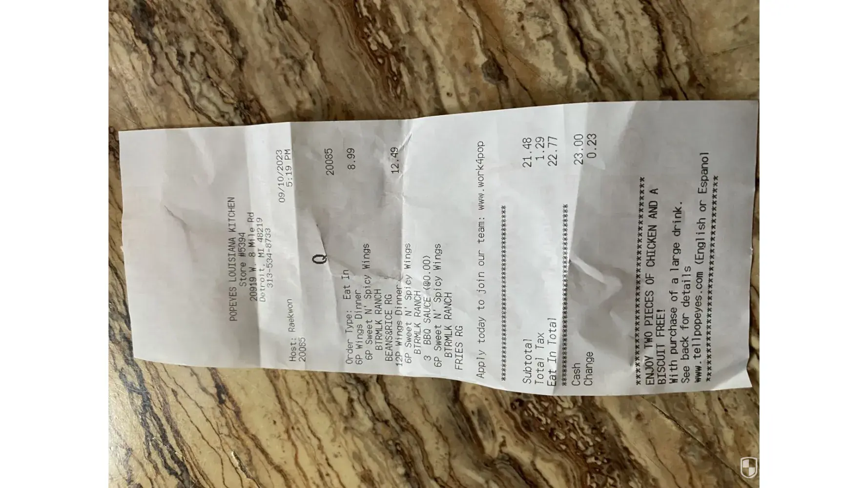On September 4, 2023, my husband and I decided to try a Popeye's fast food restaurant. We were anxious to try the restaurant, and had coupons, which was an extra incentive to go.