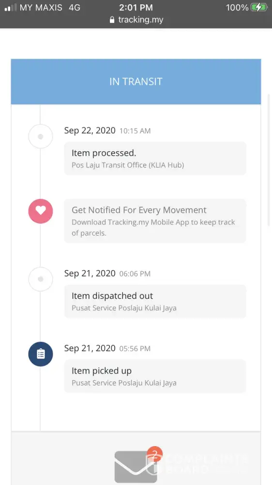 I am complaint about pos laju sender person
