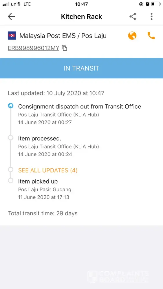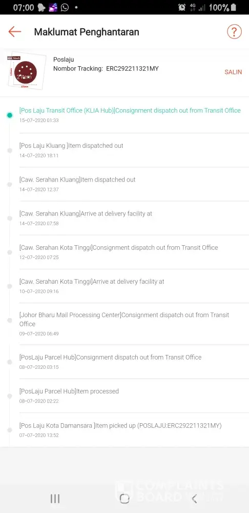 Complaint on POS malaysia feedback