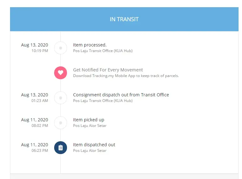 Even though, other times poslaju does ship fast but somehow now, it's stuck at KLIA Hub for days?.