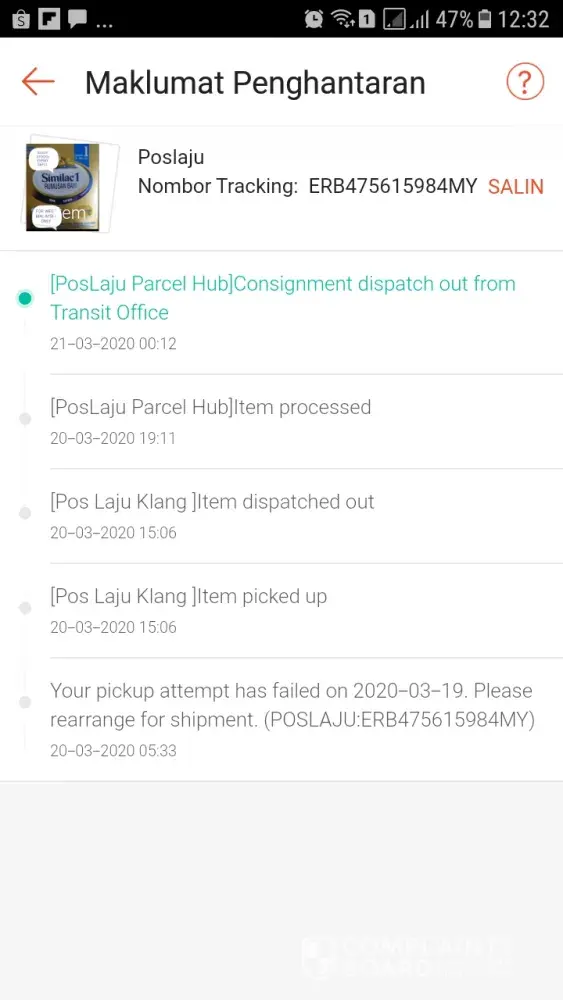 Barang telah dipos oleh pembekal pada 20.03.2020 dan telah berada di pejabat poslaju klang pada 21.03..sehingga 27.03 masih belum sampai di hulu selangor..barang penting susu anak telah hampir kehabisan..beli bnyk..call customer service lmbat x bejawab..lambat..mohon ambik perhatian dan tindakan