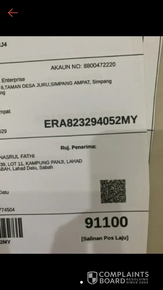 ERA771752489MY ini parcel saya jumaat 29/11/2019 hantar dekat office suami saya(pejabat Amanah ikhtiar malaysia ) tapi orang pos laju ranau hantar dekat sebelah office (koperasi aim ) nasib baik tadi suami saya tanya kalau ada barang sampai.. Selalu pos laju hantar dekat office suami saya.. Tidak tahu apa masalah hantar dekat sebelah office. Kelemahan sistem pos laju ini .. Tidak memastikan tempat yang betul2 sebelum hantar barang.. Banyak kes ini berlaku.. Harap hal ini diambil perhatian . Barang ini dibeli dengan wang ringgit.. Bukan air liur.. Itu sampul sudah kena buang.. Hanya bungkusan barang saja.