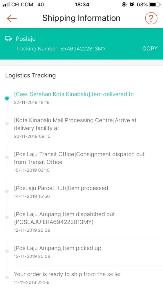 Another case is, I sent out items to my customer, and for almost a month, I didnt receive the item. Poslaju your courier is bringing a lot of problem to my business.