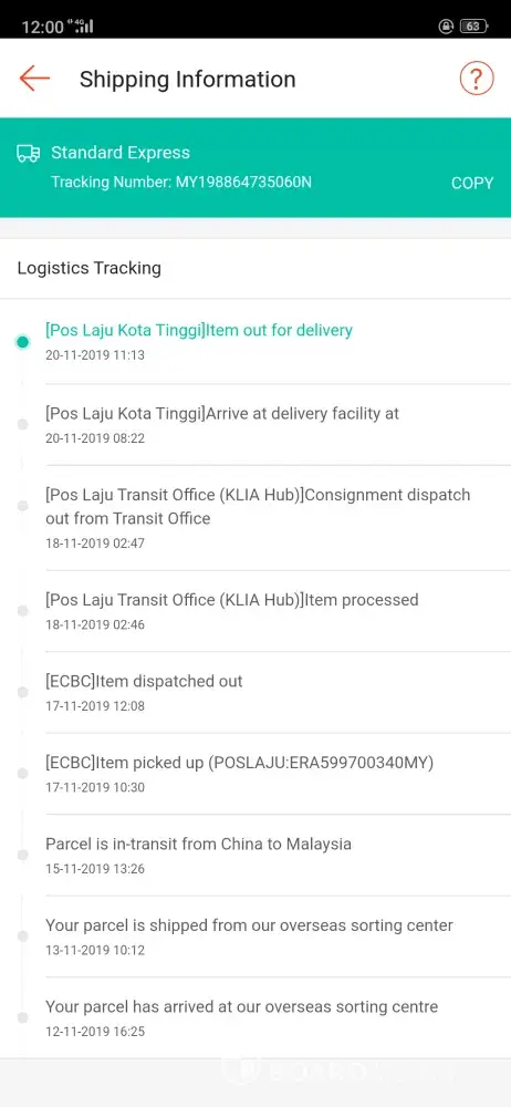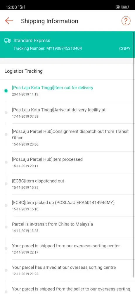 since the parcel send out on 04 november 2019, Its been 15 days for me to wait for my parcel CD355476035MY. I don't know need so long to delivery the parcel since 04 november 2019. tings are still in the office pahang, so long so long so long delivery.