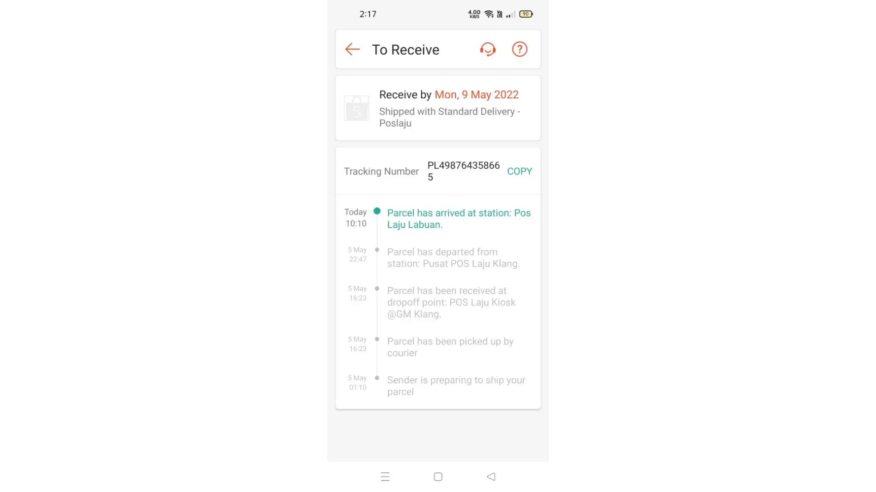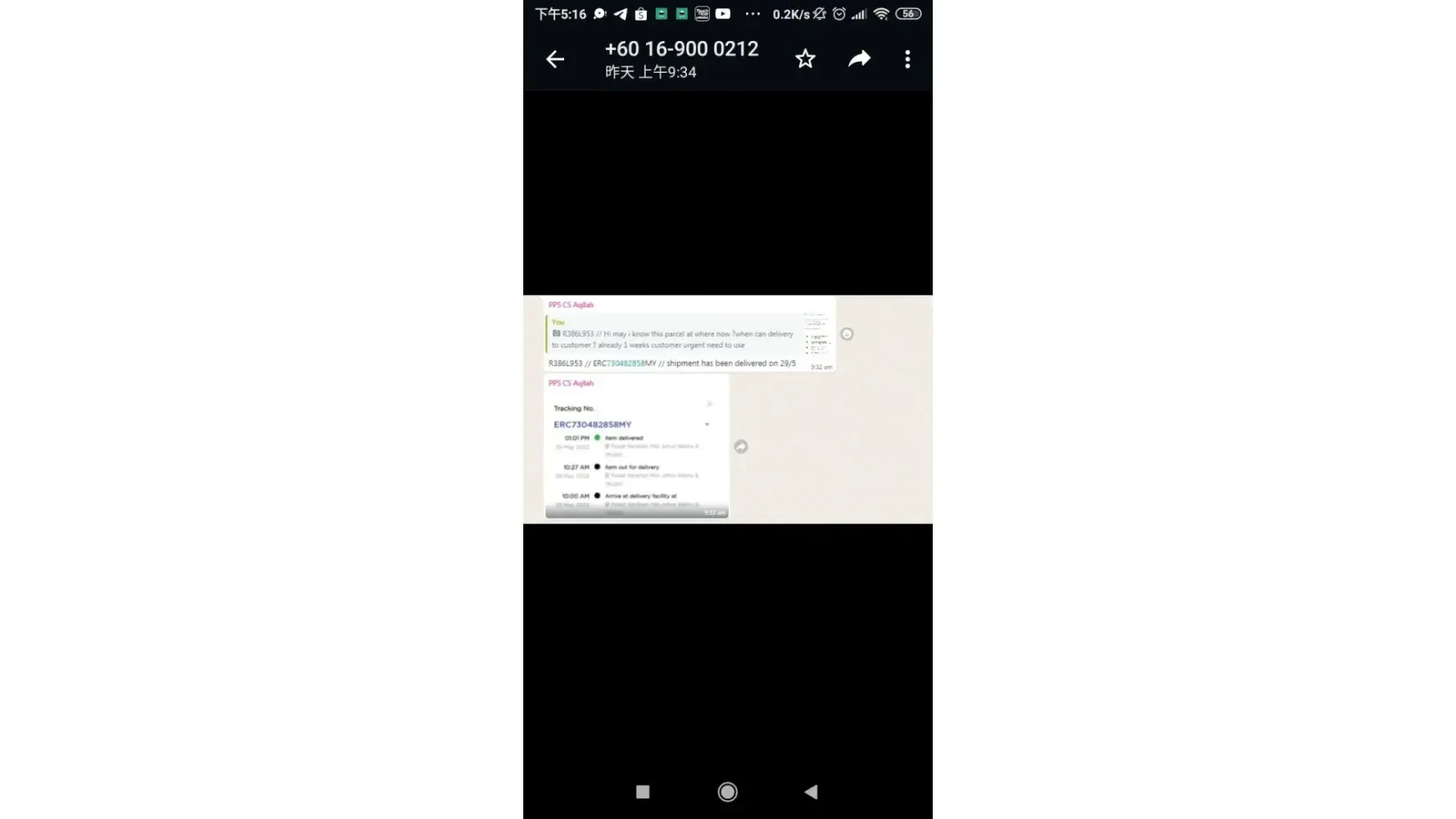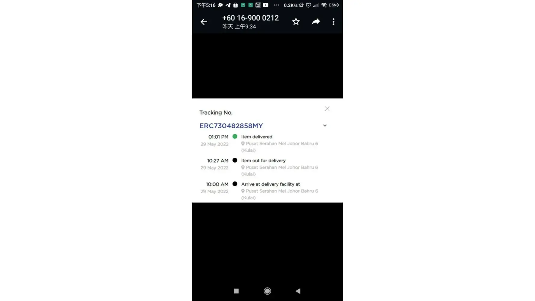 Tracking number LY500880382MY, status received. .tapi saya tak ada terima pun. call pun no answer.