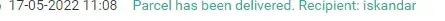 [protected]:06 parcel out of delivery and [protected]:08 Parcel has been delivered. Recipient: iskandar .but my parcel dont arrived to me and my name no iskardar more suspicious parcel only take 2 minit to arrived that dont make sense