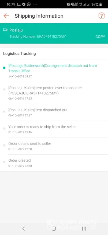 Pos Malaysia penghantaran tidak mengikut jadual dan tak update status brg