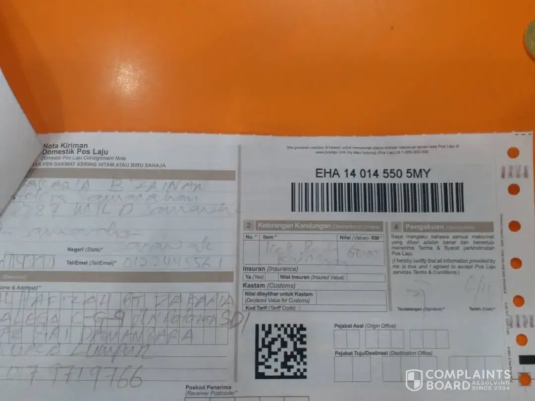 Pos Malaysia barang tidak sampai
