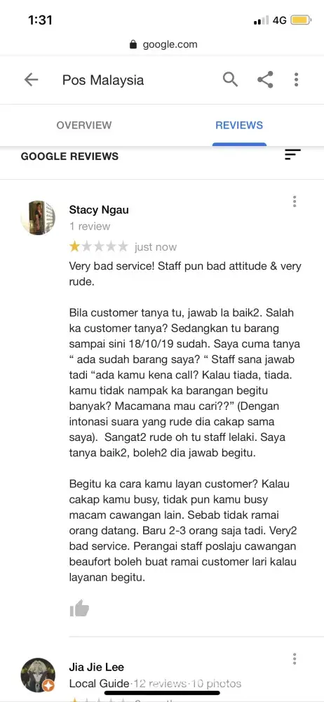 Begitu ka cara kamu layan customer? Kalau cakap kamu busy, tidak pun kamu busy macam cawangan lain. Sebab tidak ramai orang datang. Baru 2-3 orang saja tadi. Very2 bad service. Perangai staff poslaju cawangan beaufort boleh buat ramai customer lari kalau layanan begitu.