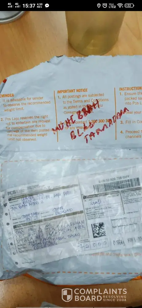 Pos Malaysia parcel tidak di hantar dengan betul