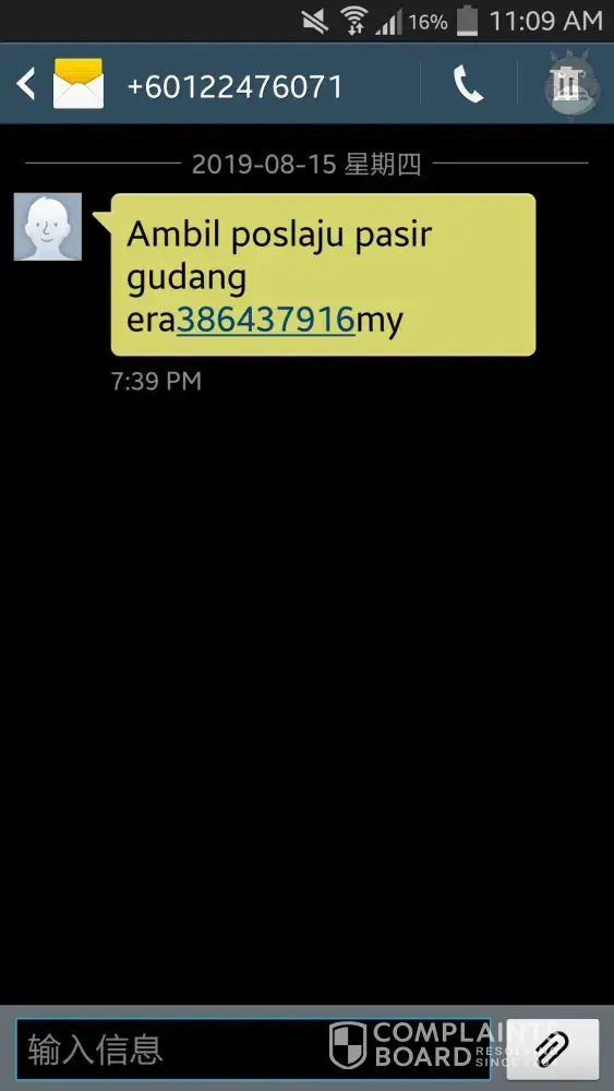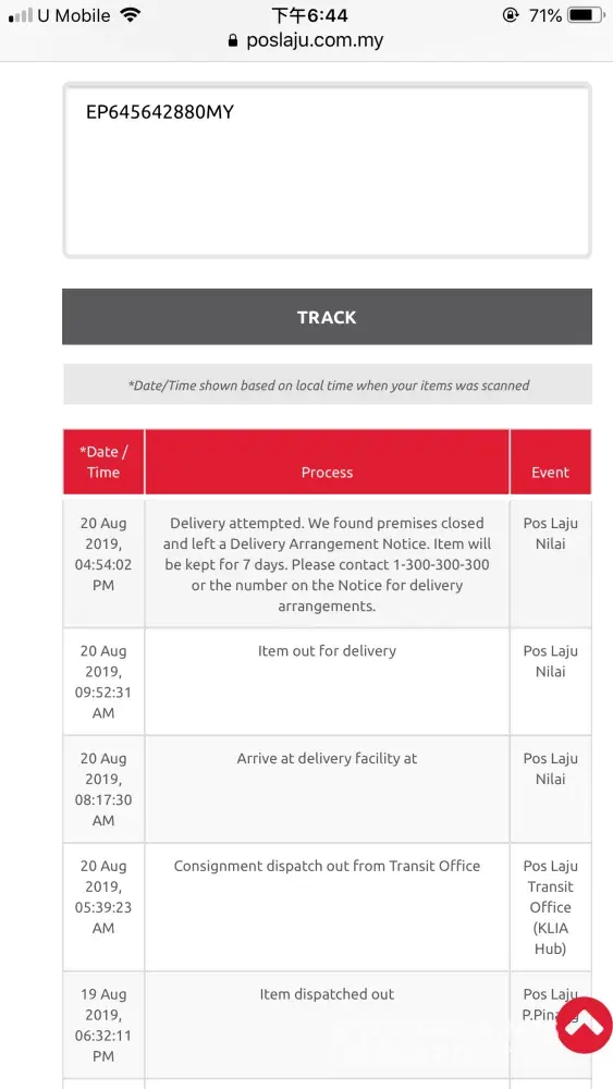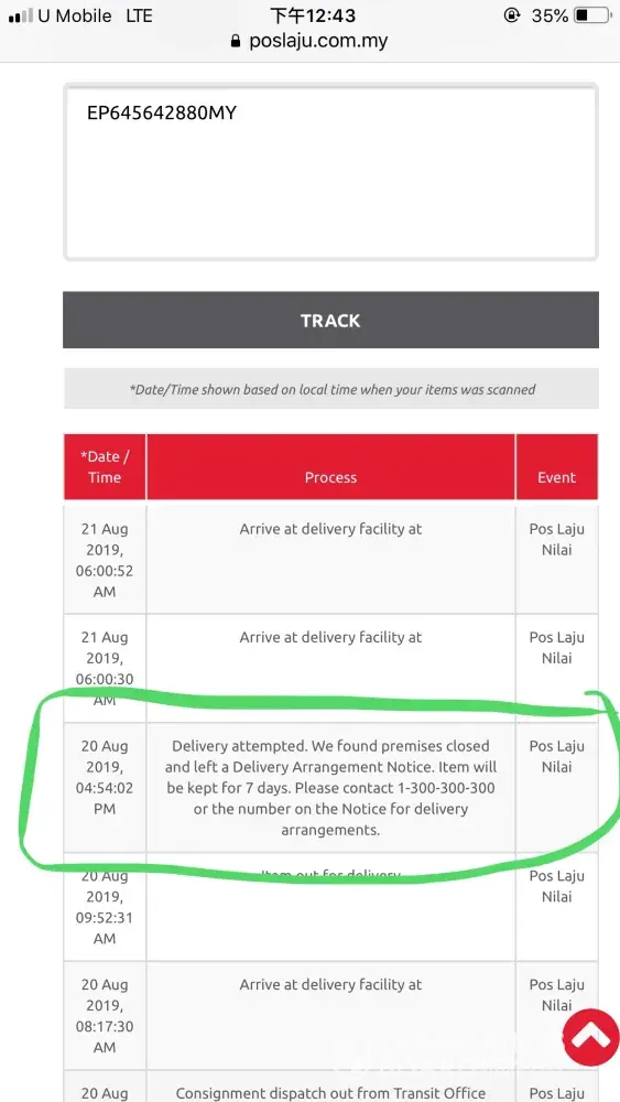 And the contact number of poslaju (Poslaju Pasir Gudang, Johor Bahru) has always fail to call!