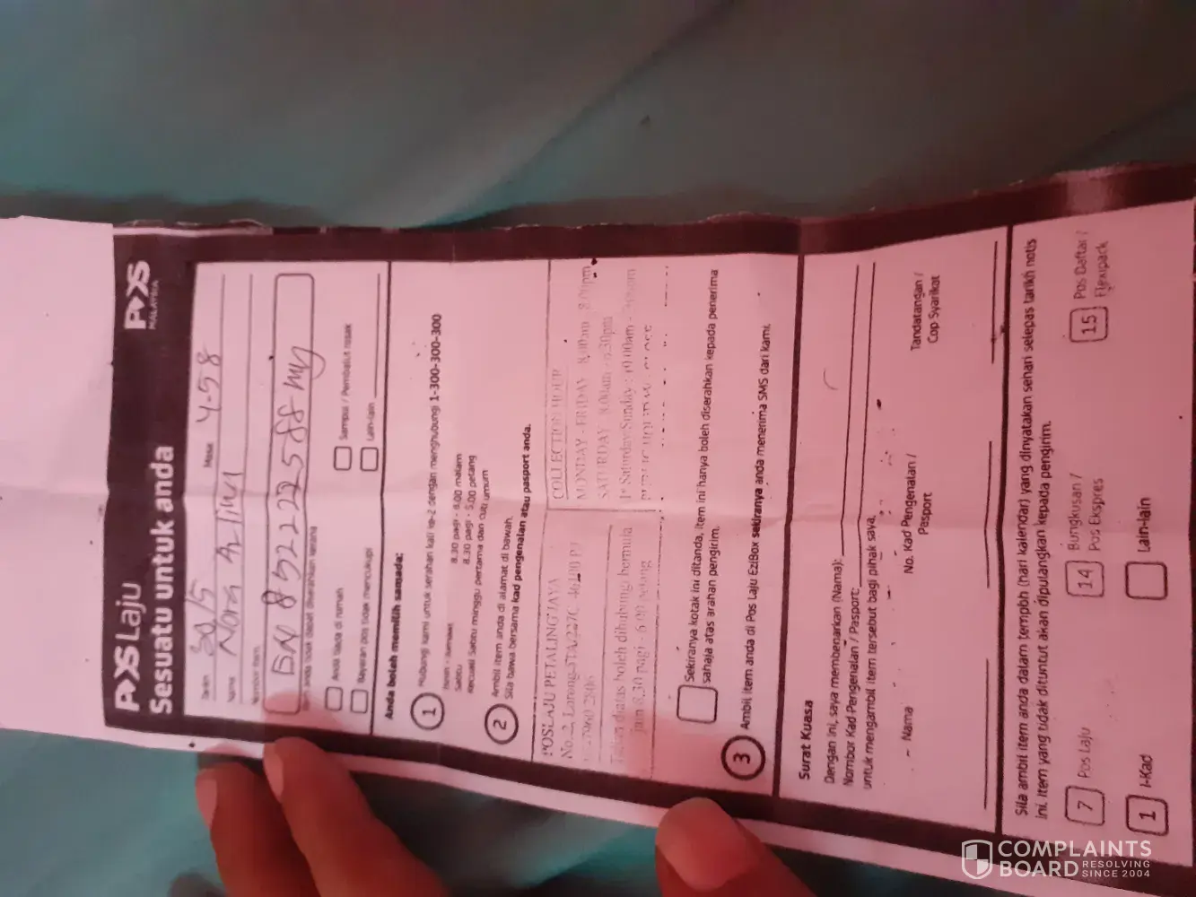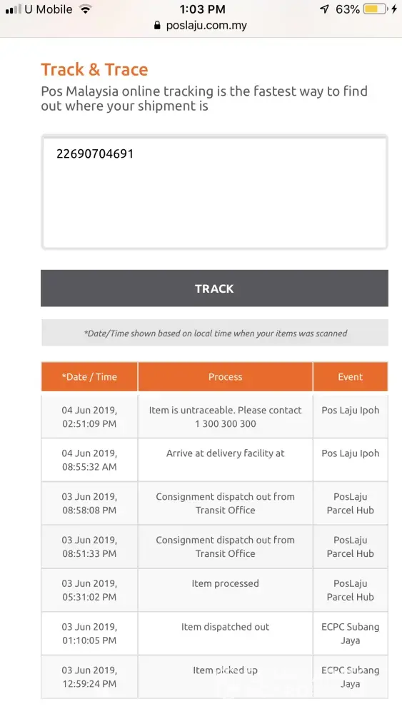 Mohon kerjasama dari pihak Pos Laju Malaysia.