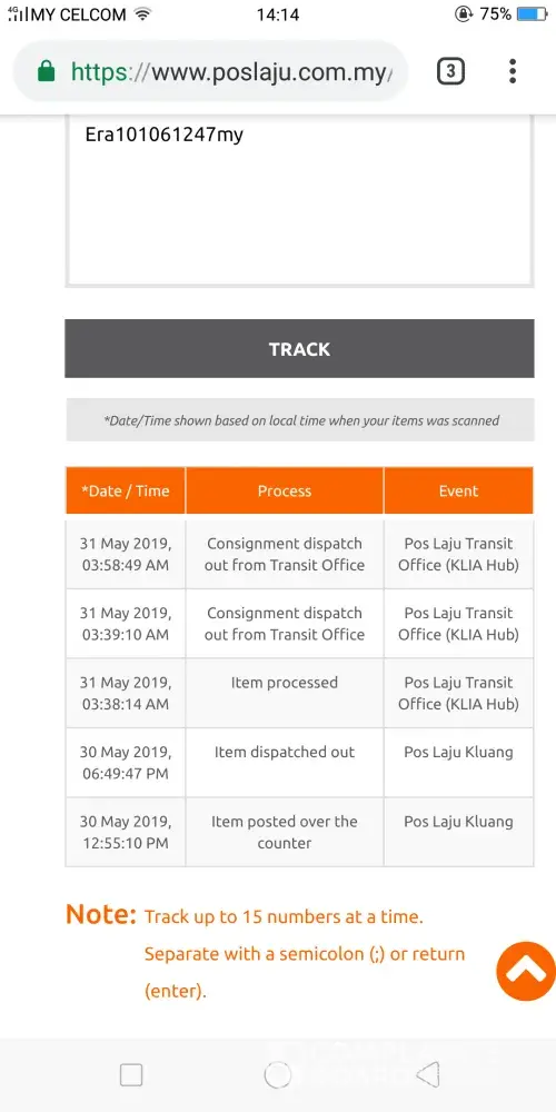 Still not receive this parcel since 22 May 2019 from Jerteh. There was no record in system after out from Jerteh.