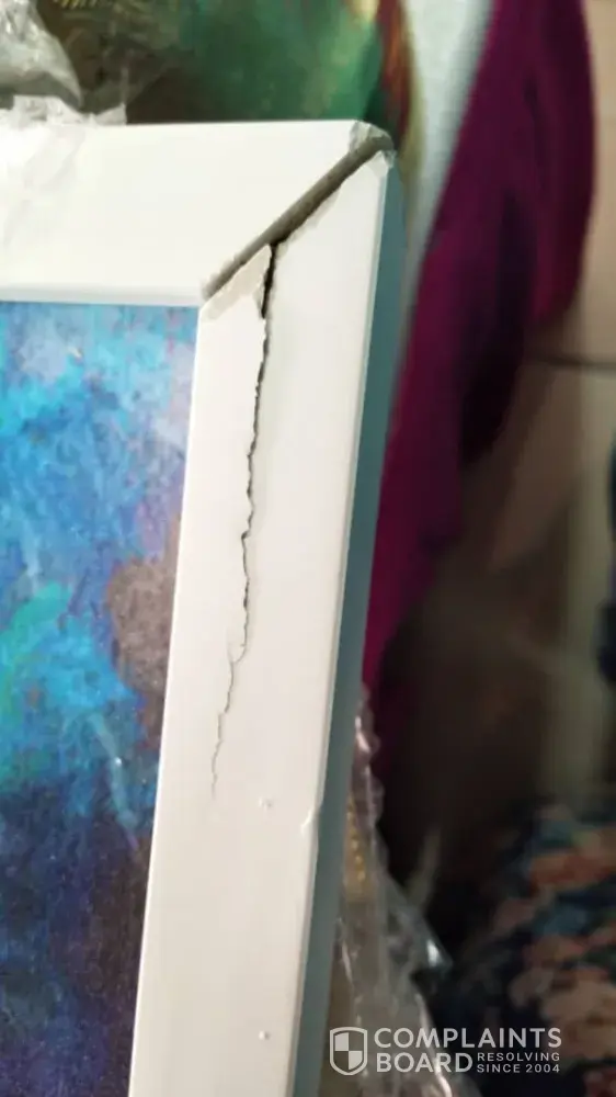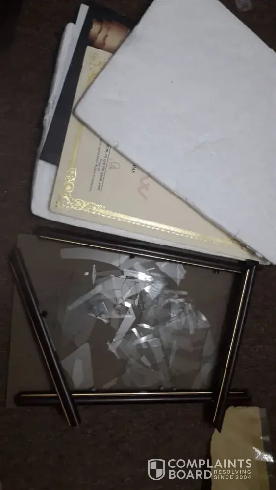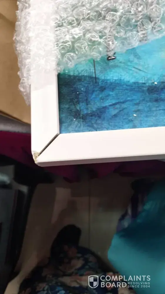 I'd like to make a complain on my artwork posted to Selangor (as stated in the poslaju form). The frame was badly damaged /cracked might be due to mishandling of your staff (refer photos attached)