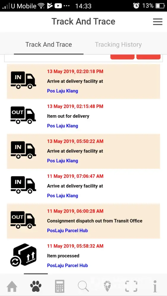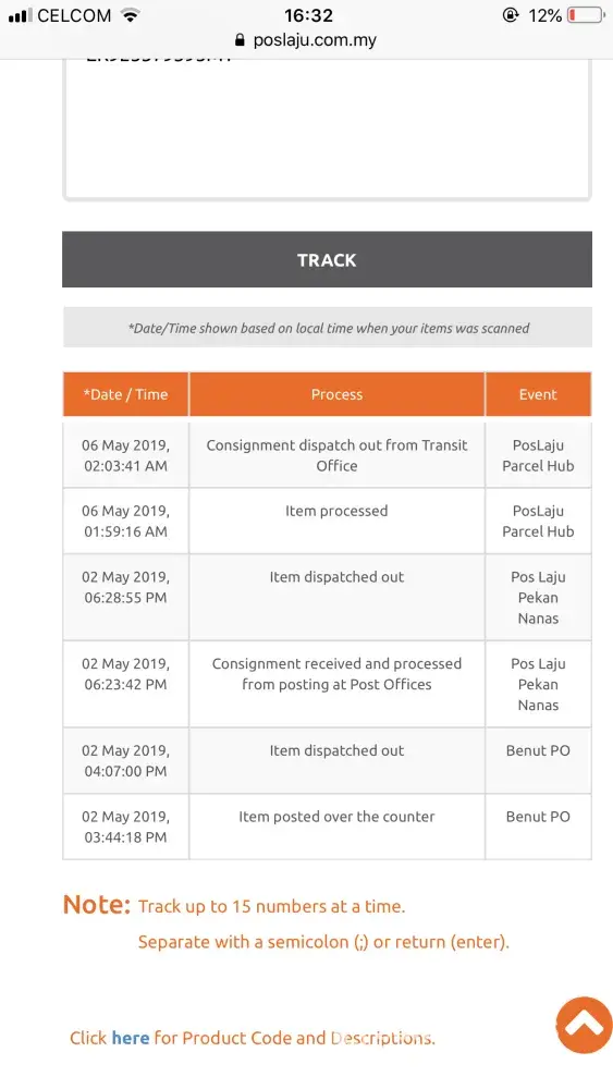 the parcel that has been post out at pos laju pengerang branch by using poslaju at 13 may 2019. Then until 16 may 2019, the track and trace for the tracking no of the parcel is still not been updated for almost 3 days. This will make my job been disturbed. And please updated the tracking system to make our job easier.