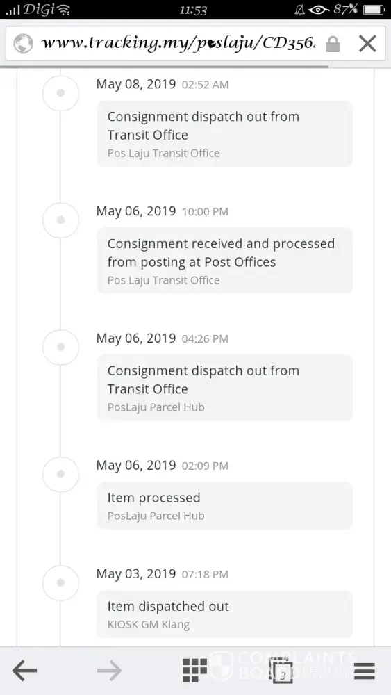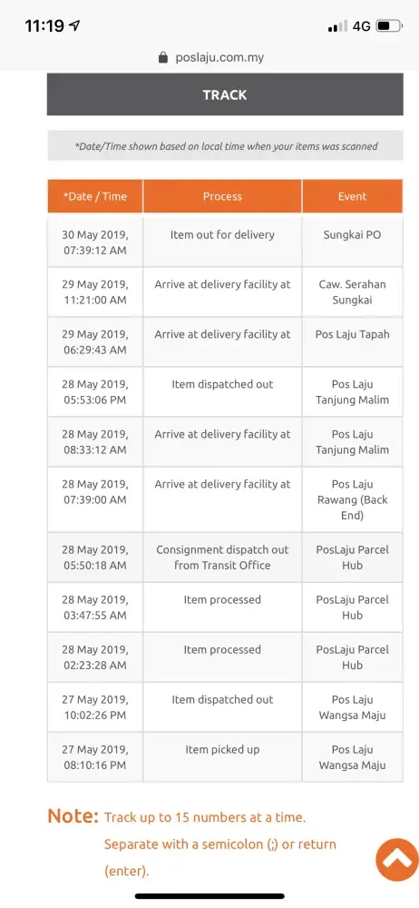 poslaju parcel 13 may 2019 (not updated the tracking no in the system for almost 3 days)