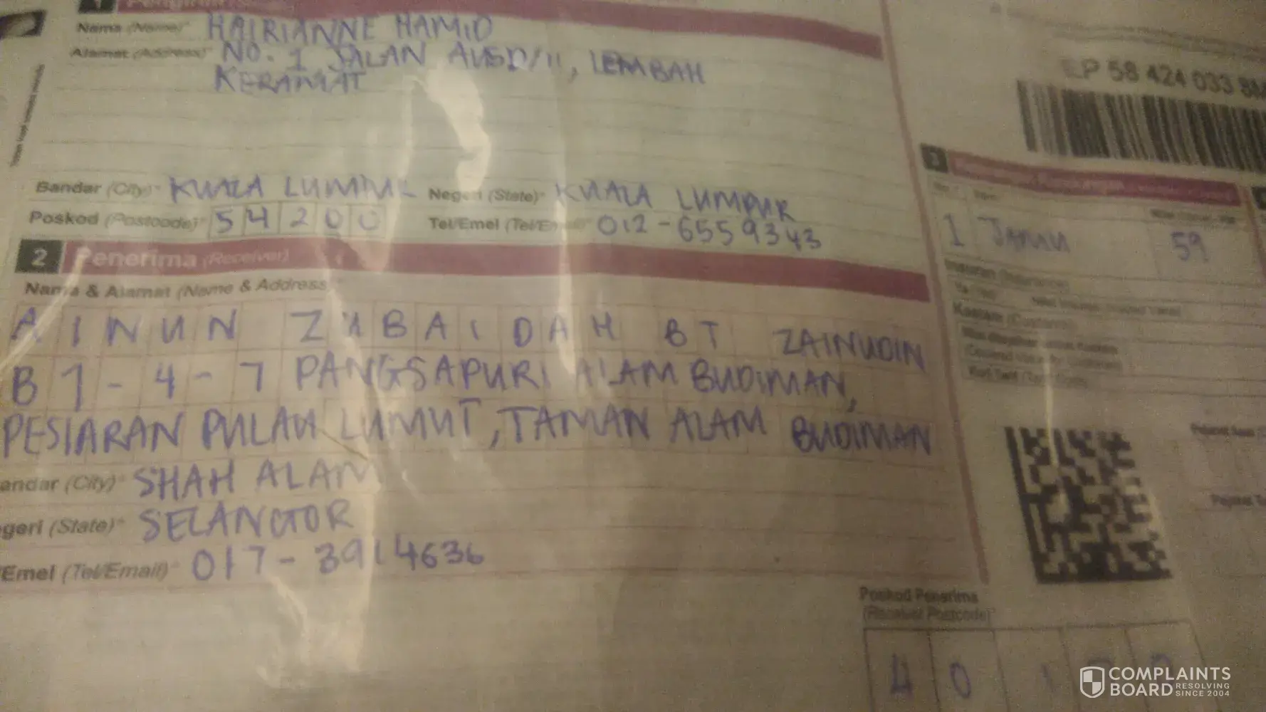 jadi saya mohon pihak PosLaju Malaysia bertanggungjawab di atas kerugian ini.