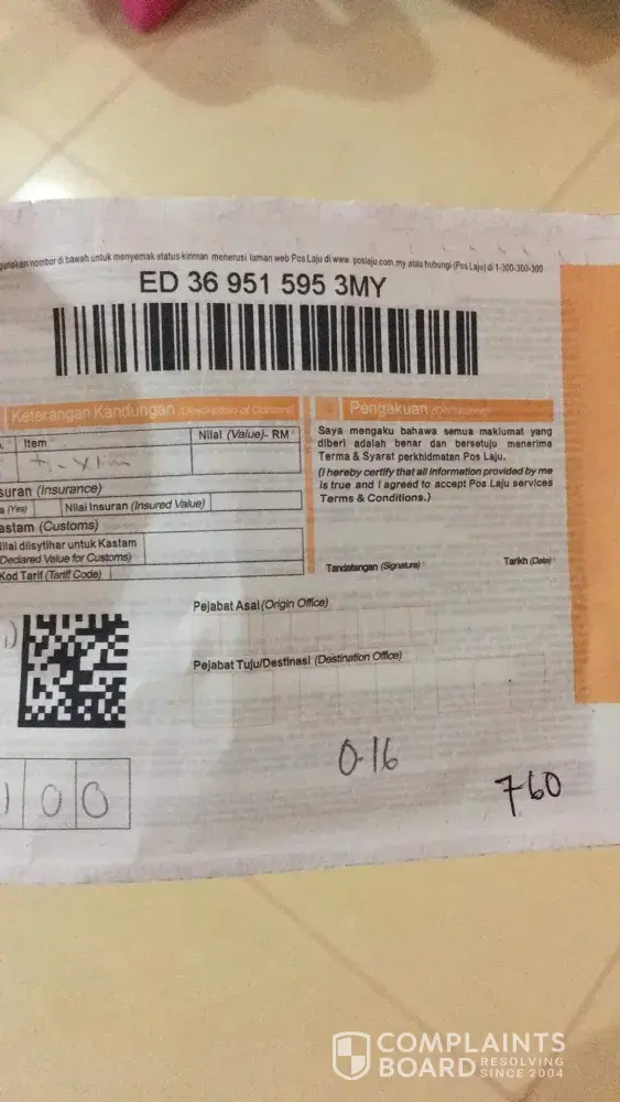 Please check my complaint thoroughly pos Malaysia