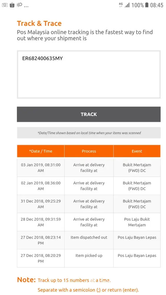 I tau dalam seminggu ni banyak cuti, tapi takkanlah parsel tu sampai Bukit Mertajam pada 28 Dec 2018 dan masih di Bukit Mertajam pada 3 Jan 2019 dalam tracking system Poslaju.