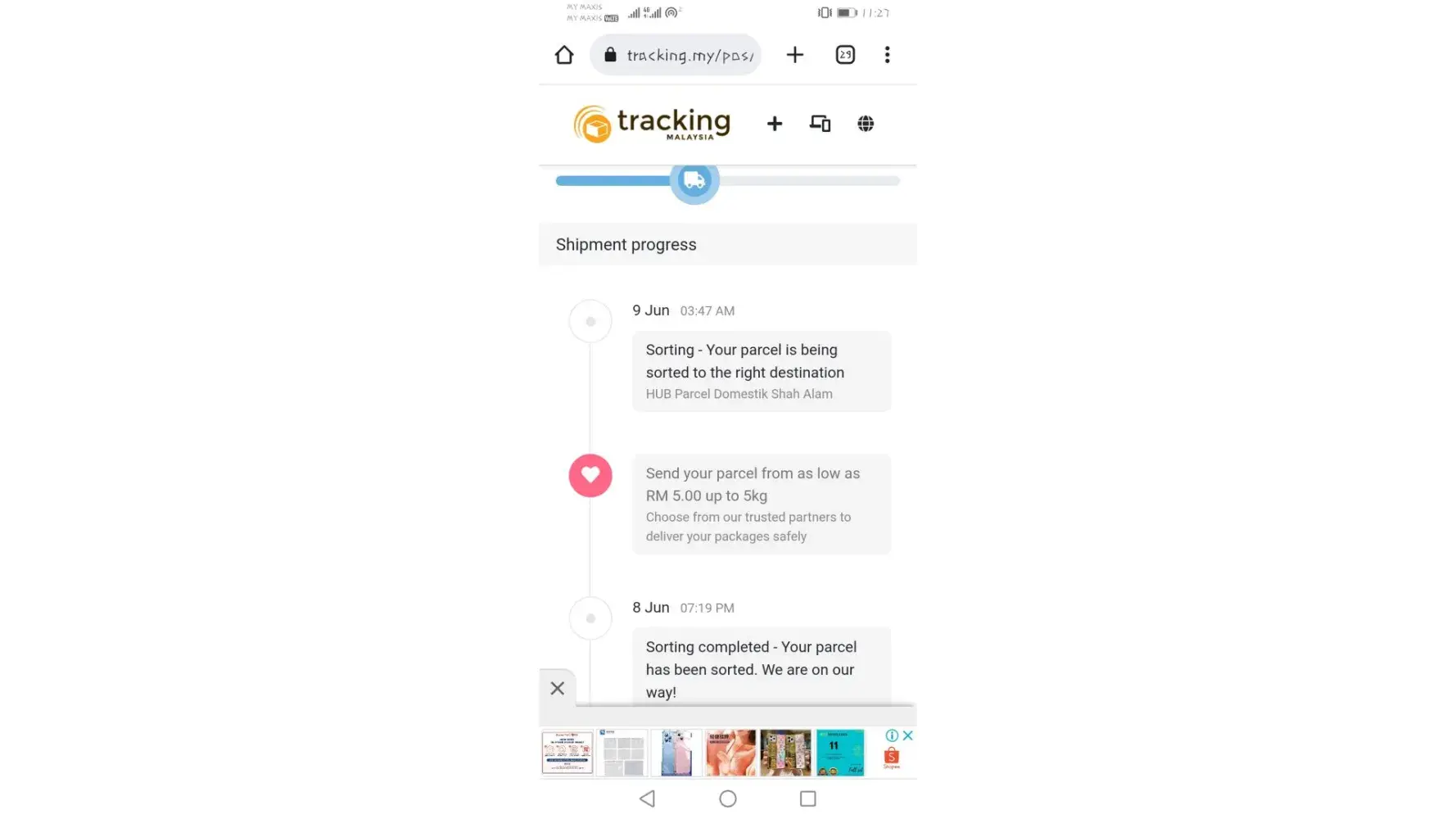I sent my parcel with the above tracking number from POS office Ampang train station, when I check the parcel still in Cheras pos office