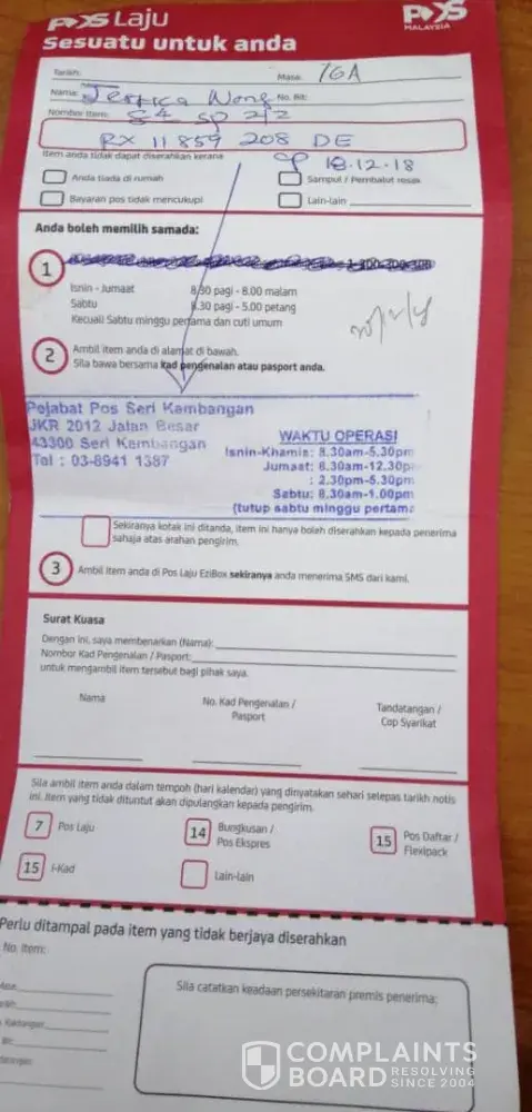 Hi, Pos laju. I hope you guys can take this seriously. I'm from Penang. Your colleague in Victoria Street called me last night to take my things by giving me the wrong Tracking number. Then it's okay. Today, I ask my friend help me to pick up my things and I only knew that my parcel is already sent back to the sender. And the parcel was received long time ago but I just received the call last night. I called to your centre, one Malay girl pick up my phone, I just wanted to check who is the sender but that Malay girl keep asking me "you beli banyak barang kan sampai you x tau siapa yang send, you must check bck yourself" . HELLO! What's the problem if I bought a lot of things? The problem is your service attitude, the way you talk to customer is def rude. I can't accept this AND your colleague should call me earlier right? If my parcel is already here. Why just called me last minute before the parcel send back? please give me a proper explanation. You're such a big company but your service is totally fail.
