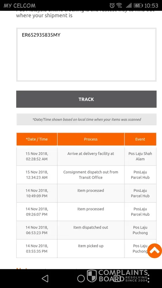 2) Barang lambat tiba di centrelah(check di tracker brg dh sampai sehari)