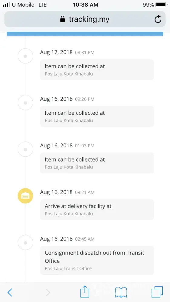 I am a regular user of Poslaju parcel, this time I posted my item over the counter, the system said item were reached to Kota Kinabalu the very next day but the problem was, your side never contacted me or my client ( addresse) to collect the item from Poslaju Kota Kinabalu office. I wonder what is the purpose of writing the contact number on that collum provided that your front counter staff always stressed on everybody to write (if one never did). It's been 3 days that the item been laying there. I have had 2 more same experience last few weeks ago in Subang Jaya, it was all done quick after I called the Poslaju careline. Subang Jaya serahan office is another one, very hard to pick up calls. But appearntly, the staff were not that busy when I walked in to collect my item. Please reach me for explaination at [protected] or email at [protected]@yahoo.com. I believed me and my clients really would like to know what is happening. You do not want to ruined other people small bussiness. Thank you.