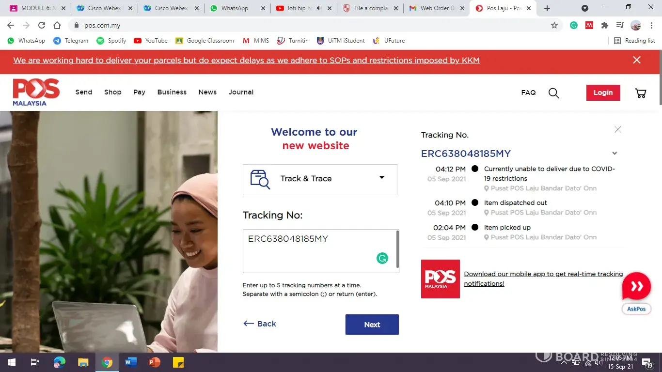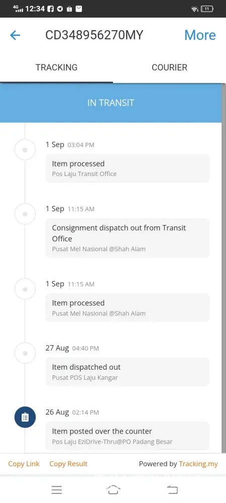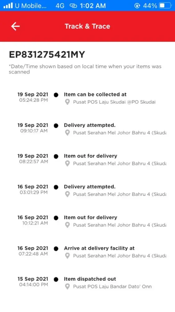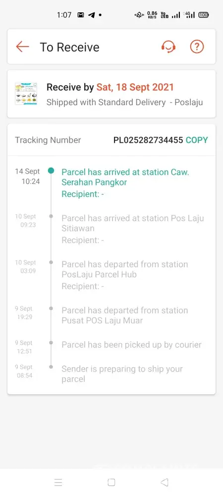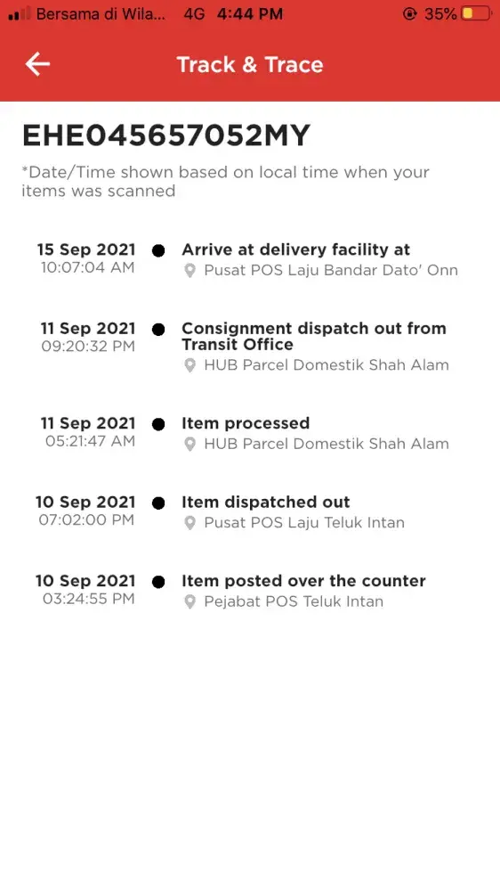 I did my parcel from Kuching with consignment number CD351976075MY to Labuan on 13.9.2021