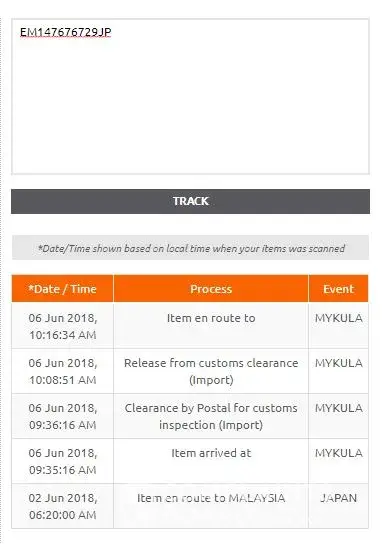 Pada 04/06/2018 saya telah mendapat tracking no untuk barangan online yang saya beli dari seller.