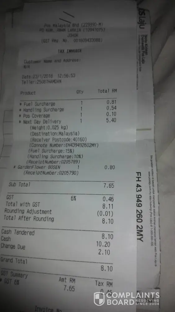 I am very very very disappointed with your Pos Parcel Delivery service in my area, SS18 Subang Jaya.