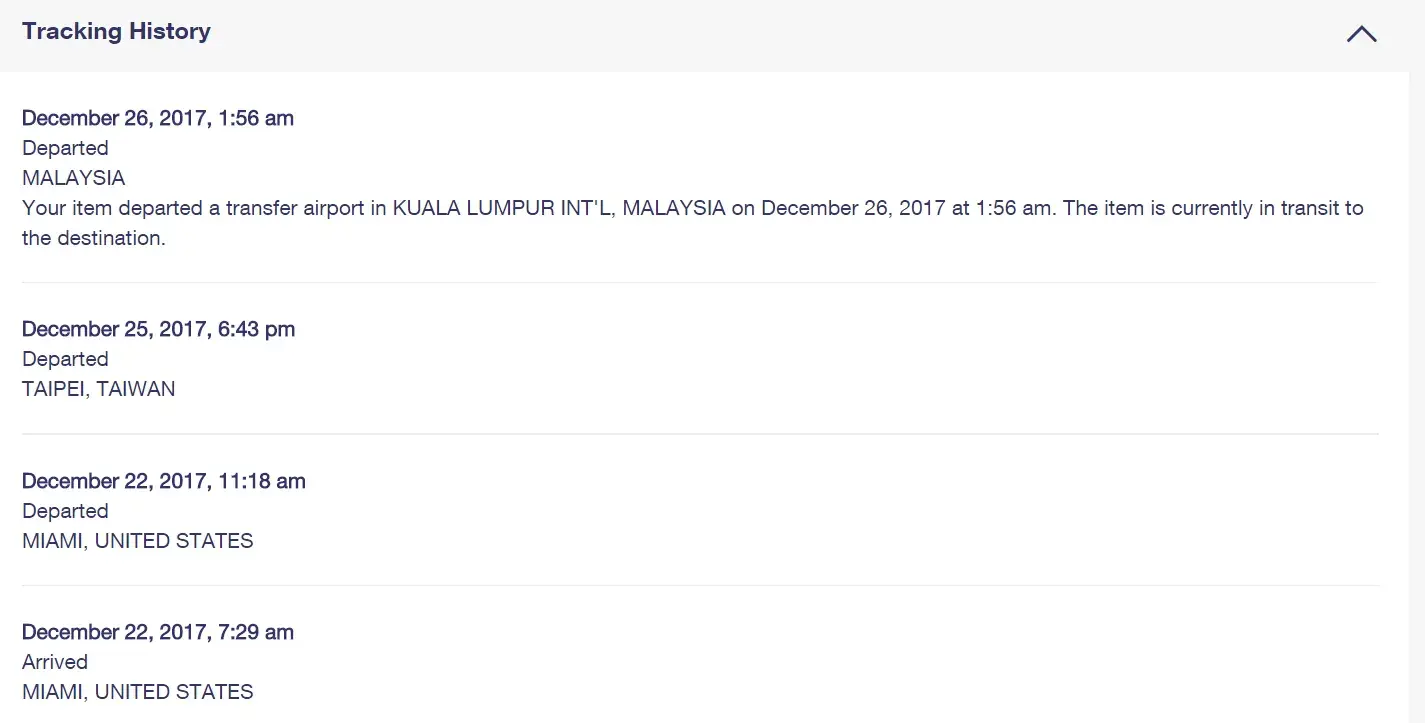 And can someone explain why keep pending my parcel at Johor Bahru Since 21 December 2017 6days agos ?Thanks a lot for your responding.