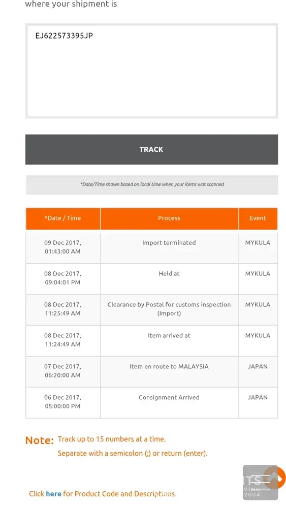 All the time, my goods EJ622573395JP from December 9, 2017 until today, January 15, 2018 have not received the goods. The feedback I wrote before waited a month without reply. Also skip my previous reply @ pos4you, in the end poslaju how the work is poor.Your staff asked me to waited that feedback and wait for the second month now. Did not pay attention to my goods.How long have I been waiting.
