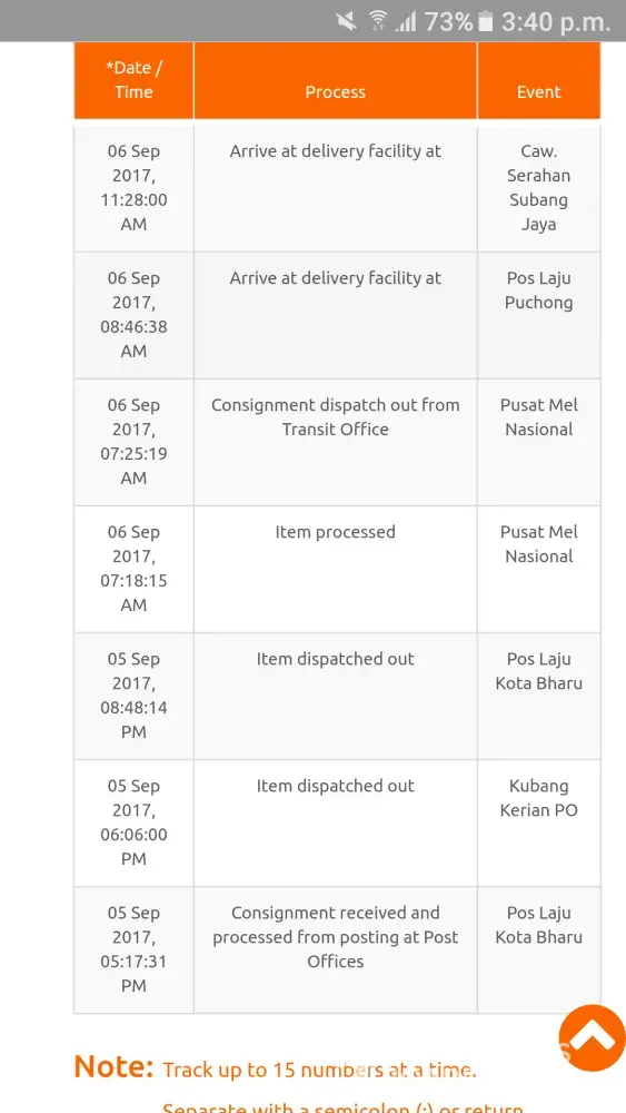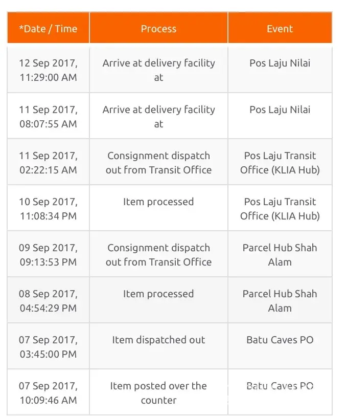 akan tetapi kenapa dalam sistem 29 Aug 2017 baru sampai Pej. Pos Petaling Jaya dan 30 Hb Aug masih di Shah Alam.
