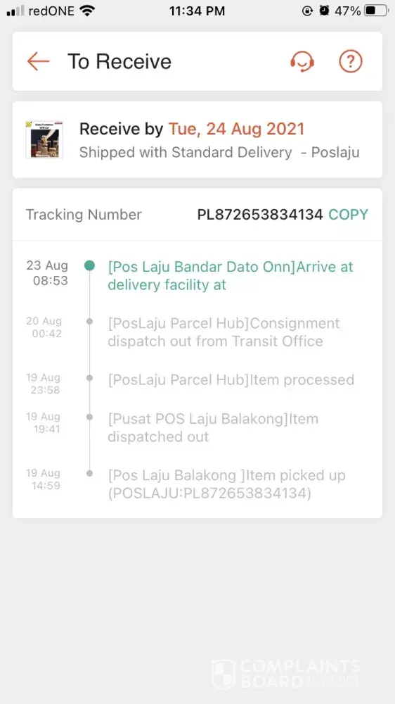 Helo. Saya call tak dapat. Bila barang tu dapat deliver ye? Seller pos 23 Julai, 24 Julai dh sampai JB. Sampai hari ni dh seminggu tak proses2 lagi. Org beli brg sebab urgent nak guna. Dah la call x dapat. Pos laju lain ok je, apesal dato' onn ni slow sangat. Tolong lah pos laju. Harap sangat barang sy sampai minggu ni. Kita dh byr utk pos, bg laju sikit.
