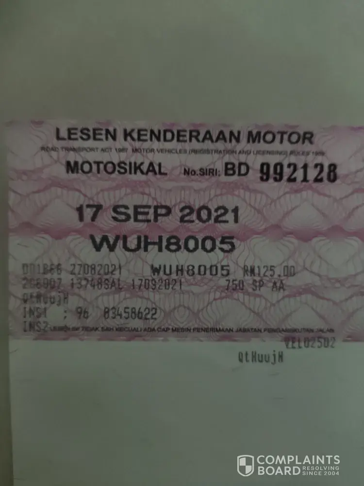 Desired outcome: I hope it can be refund (I give back the roadtax, I want my money back), but I know it's impossible. Because the she say, the way your branch manager say. They all just want to letgo the issue away ASAP. But neglected the customer.