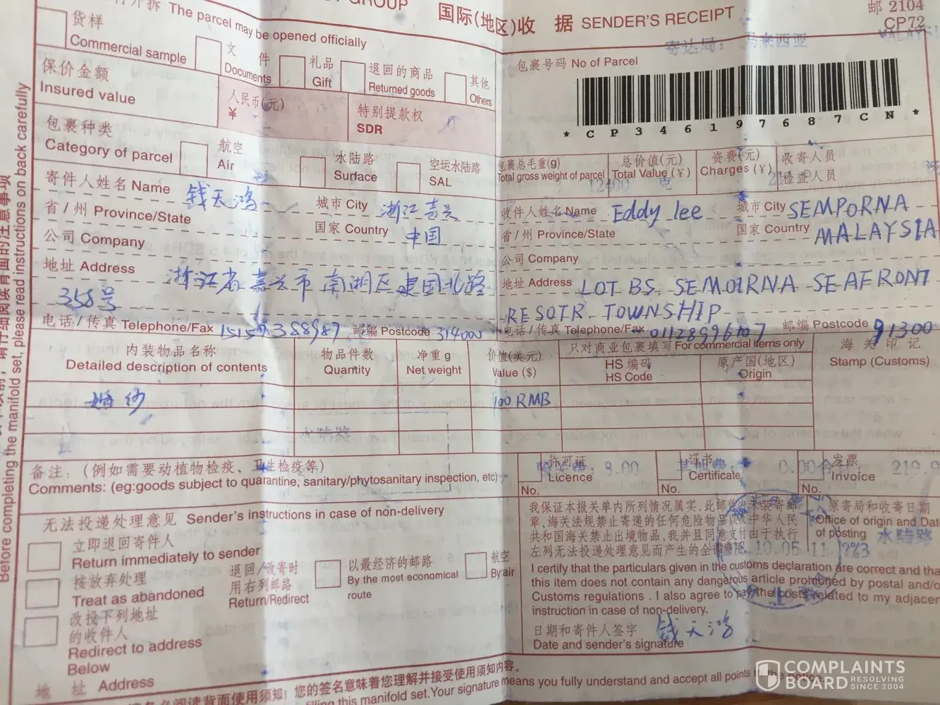 ER736302656MY this the tracking id. PLEASE DO SEND THE PARCEL