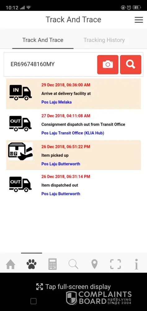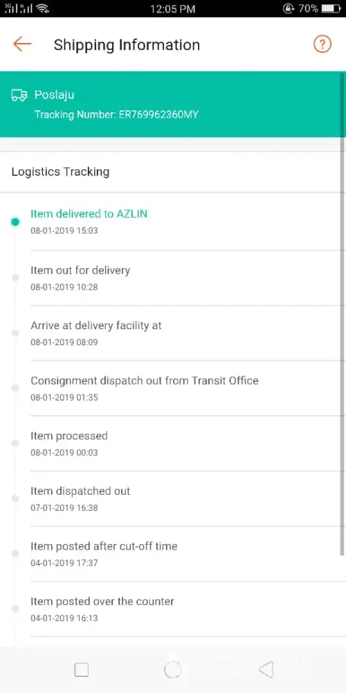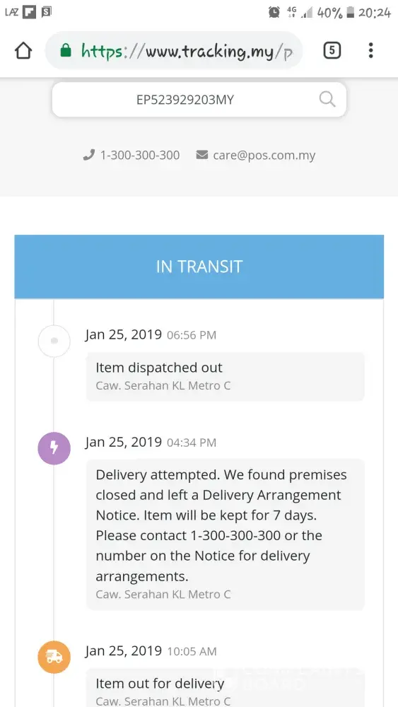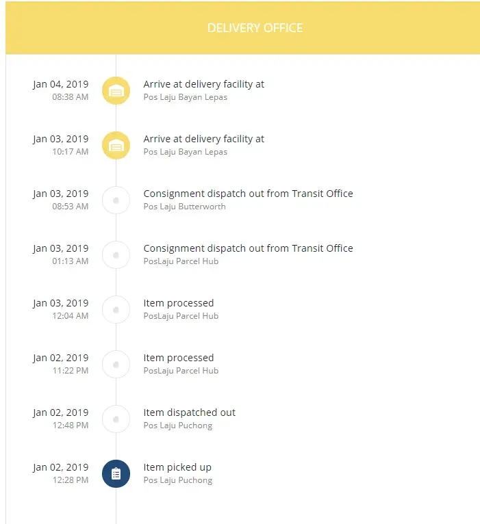 Pos Laju Bayan Lepas''. Today 4 Jan 2018 I recheck the tracking also show ''Arrive at delivery facility at Pos Laju Bayan Lepas''. Is the posman lazy to delivery?