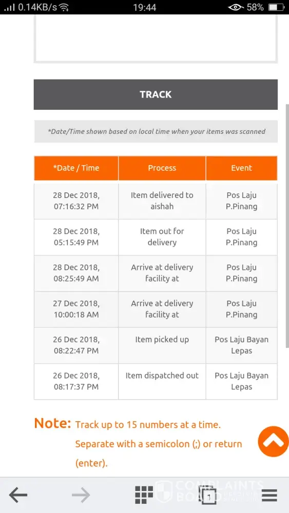 That items still not received for my customers about 5 days.. How comes that items it turn from bera and then to Kuantan and to Temerloh again?.. And not received to jerantut address