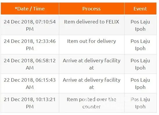 I check the tracking on 3 Jan 2018 as is show ''Arrive at delivery facility at