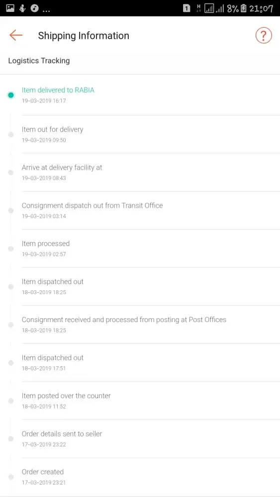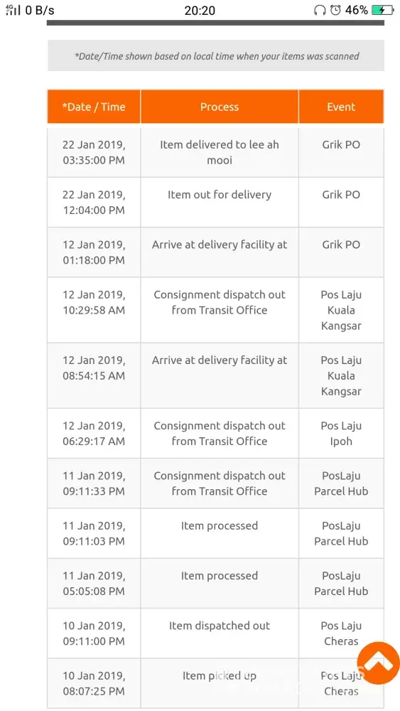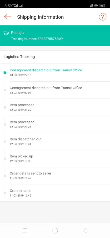 Saya ada 2 barang yang sepatutnya sampai hari ini(19/3/2019) . 1 barang sampai dengan selamat sedangkan barang yang lagi 1 dibawa balik
