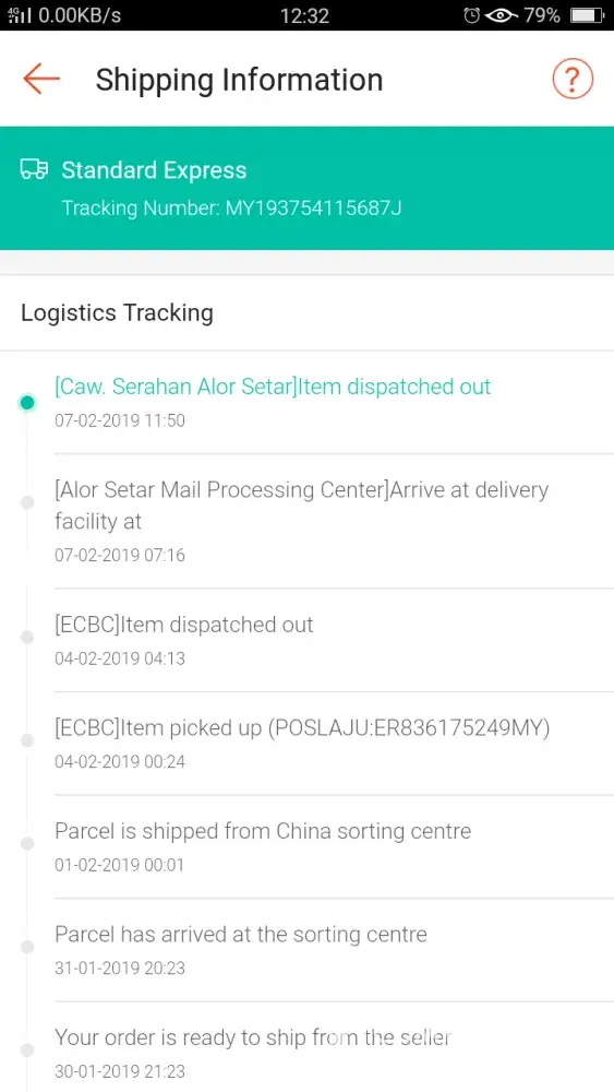 As of today the complaint is made, for item ID EP594821978MY, the item still pending at Pos LAju Alor Setar as I checked the status as of now, 14 Jan 2019 at 12.28pm. The item was sent out by supplier on 9 Jan 2019 at Pos Laju Jitra. From 9 Jan to 14 Jan, there is already 5 days. Please feedback the status. Thank you.