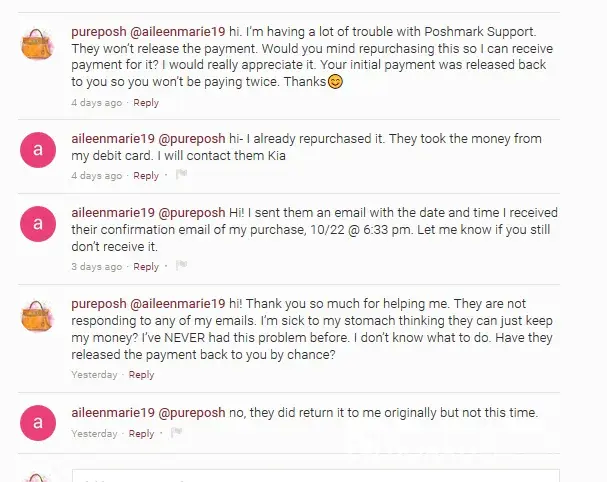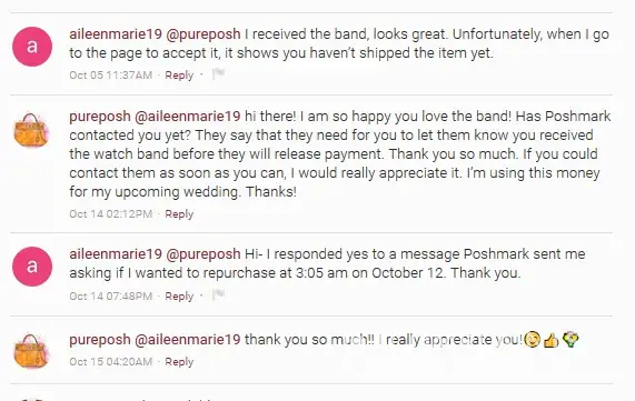 The sellers there 98% of them are low-life crooks. I tried to purchase a shirt on there and the seller doesn't respond and they don't ship! THIS is why Poshmark has a bad reputation. And there's not enough protection for the buyer! They need to put a time limit on these sellers to ship their orders, and they need a better message system! Not public ones for all the world to see. The website is TRASH and so are most of these sellers!