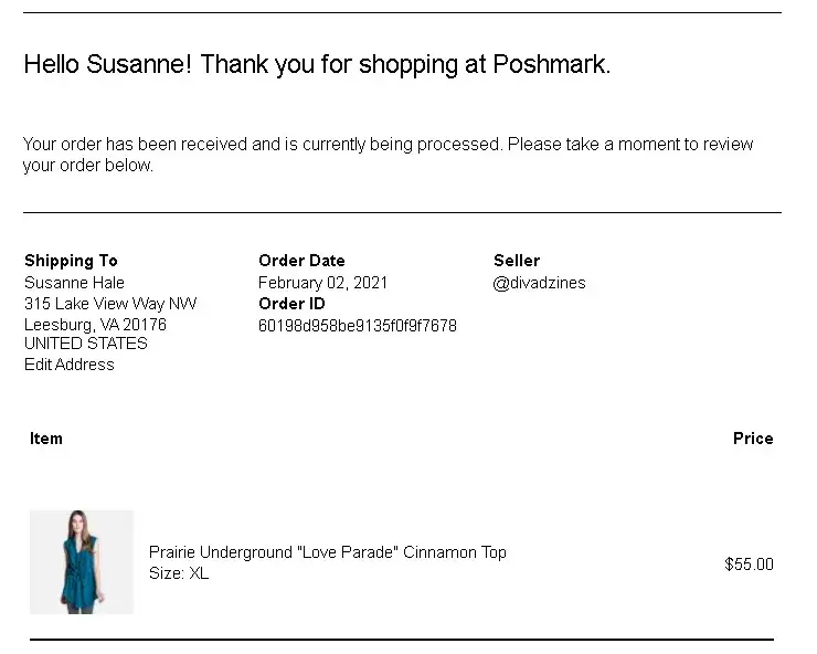 Poshmark is a buy and sell company that promise seller and buyer protection. I have emailed them multiple times under the 3 day time period. I was never giving a new tracking number or notified of anything. I have sent many emails.