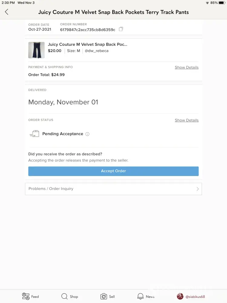 7/14/21 Order # 60eef13c20fc70af802fed25 ($35.00)
