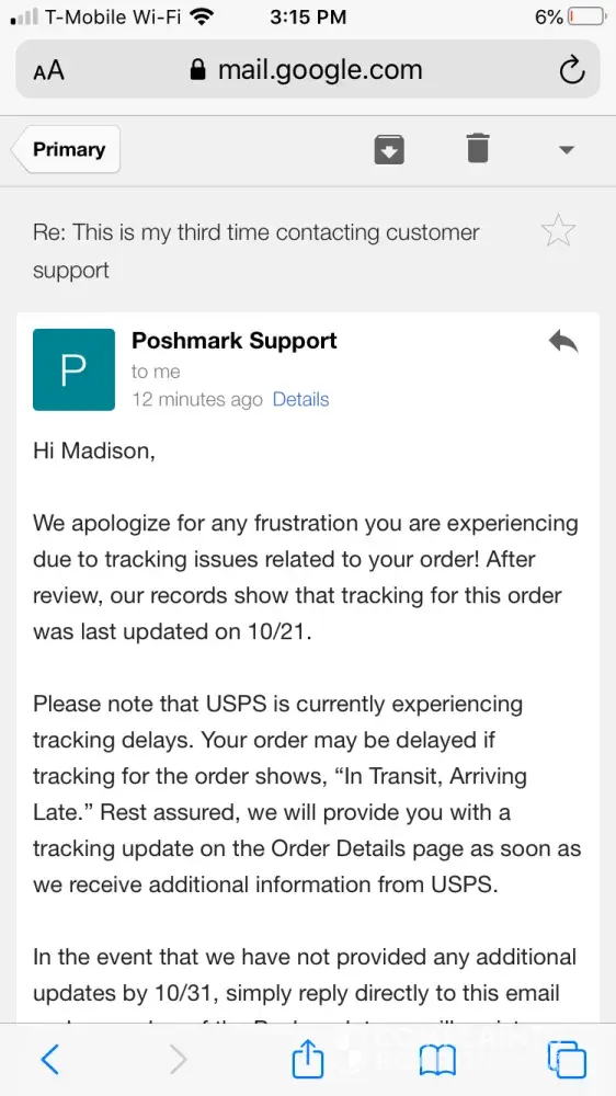 I should have known better to start with before pulling the trigger, but I was spoiled by Amazon. I'd been made complacent by easy returns and good customer service when things went wrong. I should have read more Poshmark reviews. If I'd have taken the time to look, I would have found thousands of negative reviews on Trustpilot, Sitejabber, and Yelp.