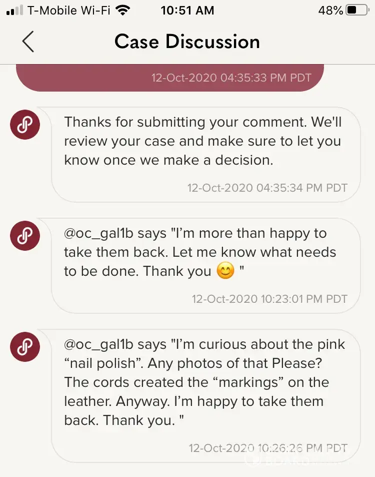 Then I received the following message: "We've reviewed the case you submitted. Unfortunately, this case does not warrant a return" -Case Resolved-