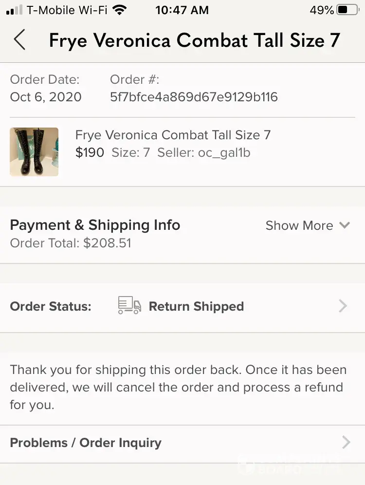 I purchased a pair of boots around October 5, 2020 when I receive them there was damage that was not disclosed. I filed a complaint and was awarded that once I shipped back the item I would be given my money back. On October 13th the damaged boots were sent back, but I still haven't received a refund. When I write Poshmark support they don't even acknowledge the situation. As if they didn't even read my third email now. I am getting so upset as it was over $200 and I am a single mom who was just trying to treat myself but now I'm getting completely screwed over. I have pictures of everything too. Which I'm glad I took cuz suddenly my ‘case history' has disappeared. As you can see in some of the photos I'm attaching, they don't even mention my refund.