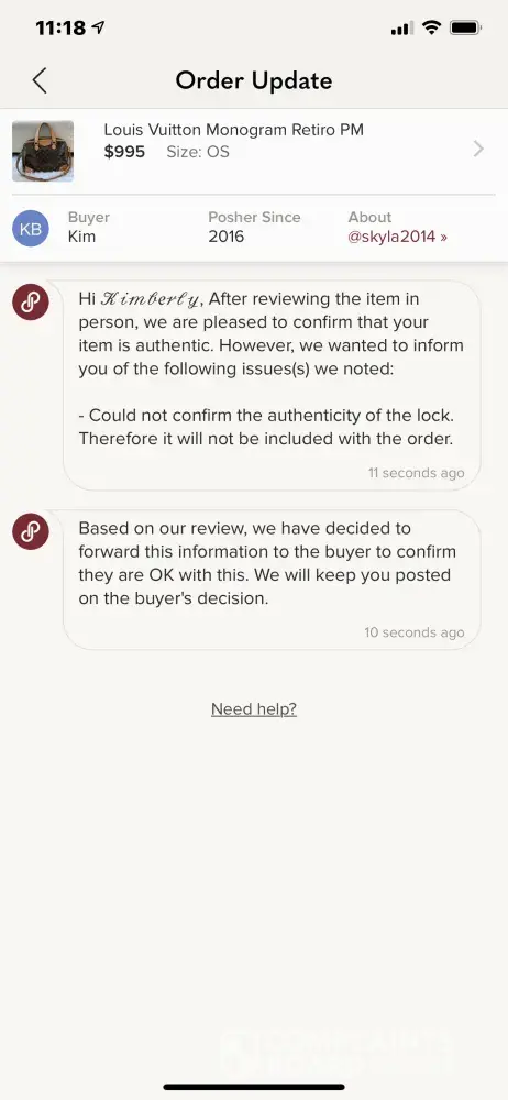 I received a message from poshmark that stated "We cannot confirm the authenticity of the lock. Therefore it will not be included in the order." This item was purchased from The Real Real who authenticates every item before putting them for sale. The lock on the bag I sold was authentic! So now they steal my property? They do not send the item back. This is theft.