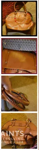 the attached pictures on the left are my posted pictures showing the excellent condition of my bag, including corners and interior. the pictures on the right are what the buyer posted claiming thats what she received from me. It is very evident that is not my bag. her bag is old dried scratched leather.